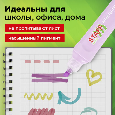 Текстовыделители STAFF "EVERYDAY HL-707" предназначены для выделения текста на бумаге любого типа. Идеально подходят для учебных, домашних и офисных задач.