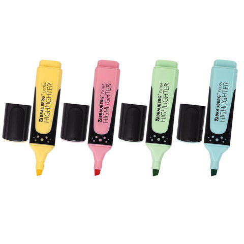 Набор текстовыделителей BRAUBERG 4 шт., АССОРТИ, "EXTRA PASTEL", прорезиненный корпус, линия 1-5 мм, 151756
