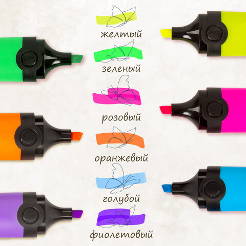Набор текстовыделителей BRAUBERG 6 шт., АССОРТИ, "DELTA", линия 1-5 мм, 151728