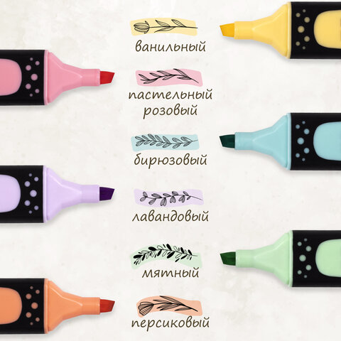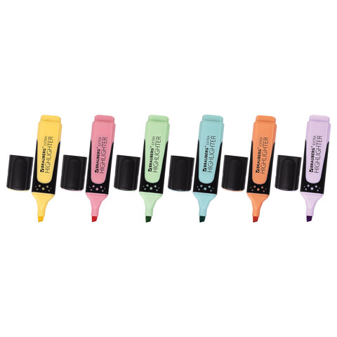 Набор текстовыделителей BRAUBERG 6 шт., АССОРТИ, "EXTRA PASTEL", прорезиненный корпус, линия 1-5 мм, 151757