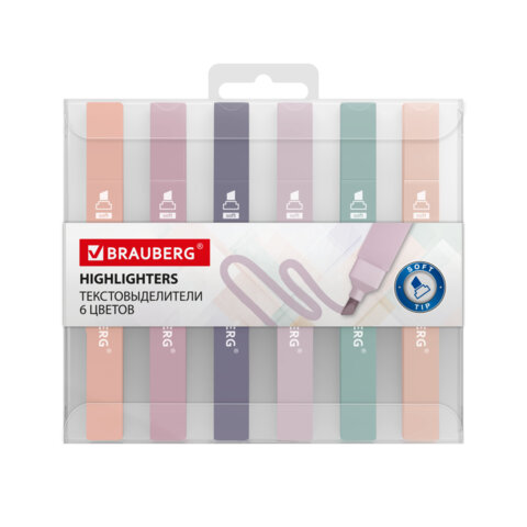 Набор текстовыделителей 6 ЦВЕТОВ МОРАНДИ, BRAUBERG "Morandi", линия 1-5 мм, 152516