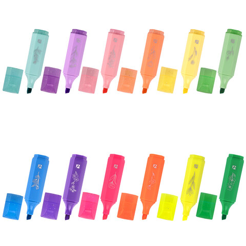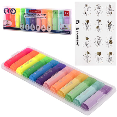 Набор текстовыделителей мини, 12 ЦВЕТОВ, BRAUBERG "ULTRA", 6 неоновых цветов + 6 пастельных цветов, линия 1-5 мм, 152538
