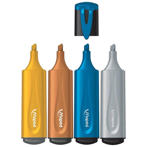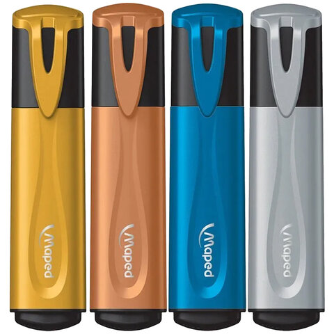 Набор текстовыделителей с блестками MAPED "FLUO PEP'S Glitter". Цвета-ассорти: золото, серебро, медь, голубое золото.