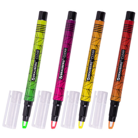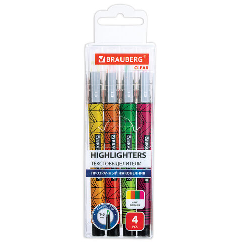 Набор текстовыделителей с прозрачным наконечником 4 ЦВЕТА, BRAUBERG "Clear", линия 1-5 мм, 152426