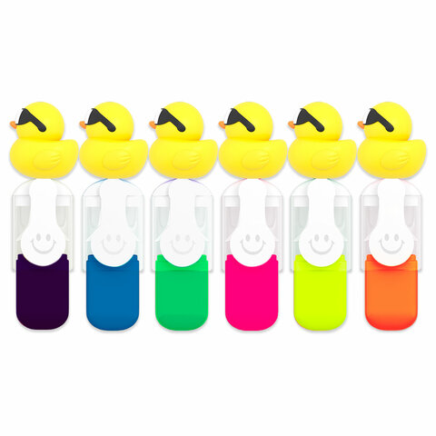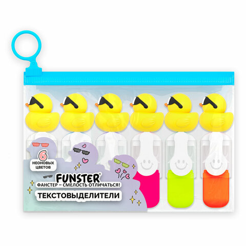 Набор текстовыделителей с топперами 6 ЦВЕТОВ НЕОН, "КРУТЫЕ УТЯТА", линия 1-4 мм, FUNSTER (ФАНСТЕР), 152647