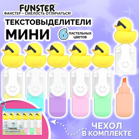 Набор текстовыделителей с топперами 6 ЦВЕТОВ ПАСТЕЛЬ, "КРУТЫЕ УТЯТА", линия 1-4 мм, FUNSTER (ФАНСТЕР), 152652