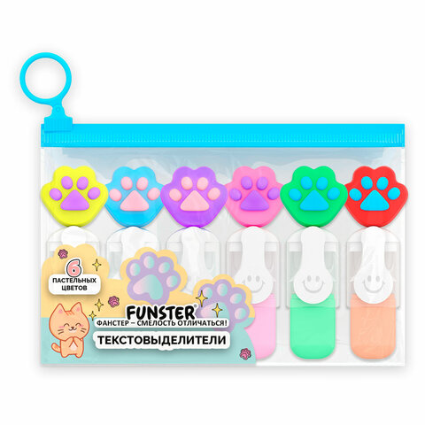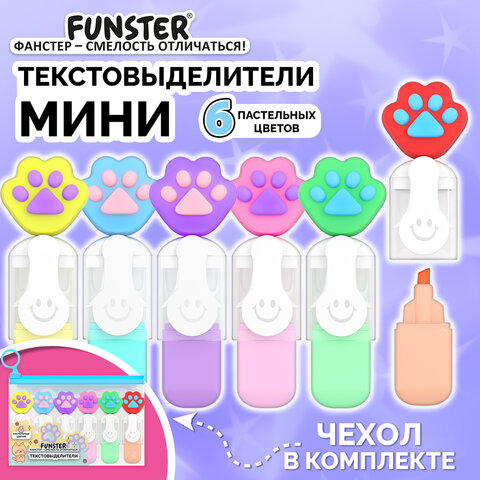 Набор текстовыделителей с топперами 6 ЦВЕТОВ ПАСТЕЛЬ, "ЛАПКИ", линия 1-4 мм, FUNSTER (ФАНСТЕР), 152650