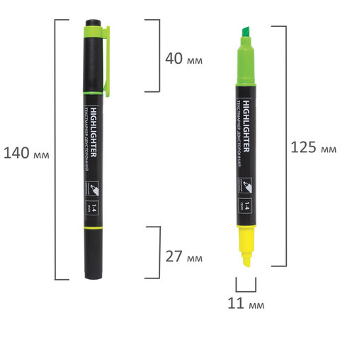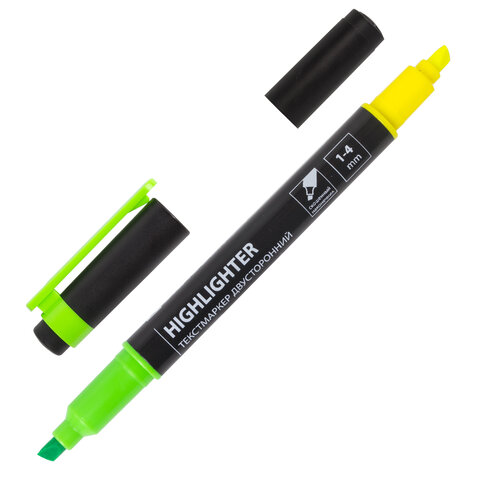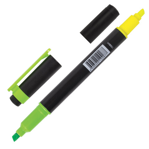 Текстовыделитель двусторонний BRAUBERG, ЖЕЛТЫЙ/ЗЕЛЕНЫЙ, линия 1-4 мм, 150841