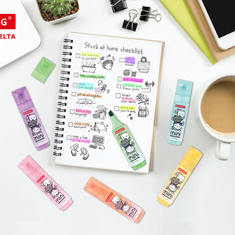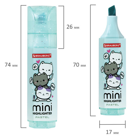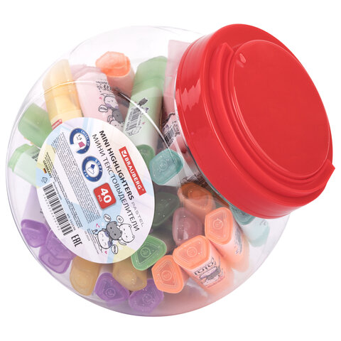 Текстовыделитель мини с принтами BRAUBERG "PASTEL", АССОРТИ В ПЛАСТИКОВОЙ БАНКЕ, 1-5 мм, 152536