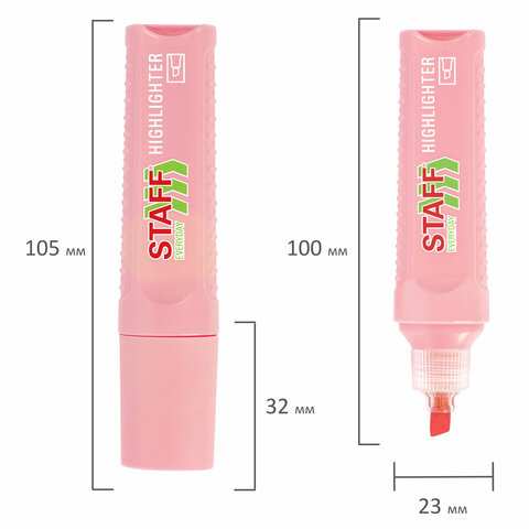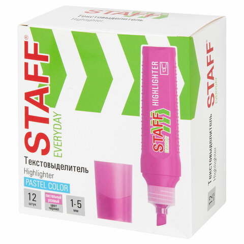 Текстовыделитель STAFF "EVERYDAY HL-707", ПАСТЕЛЬНЫЙ РОЗОВЫЙ, линия 1-5 мм, скошенный наконечник, 152545