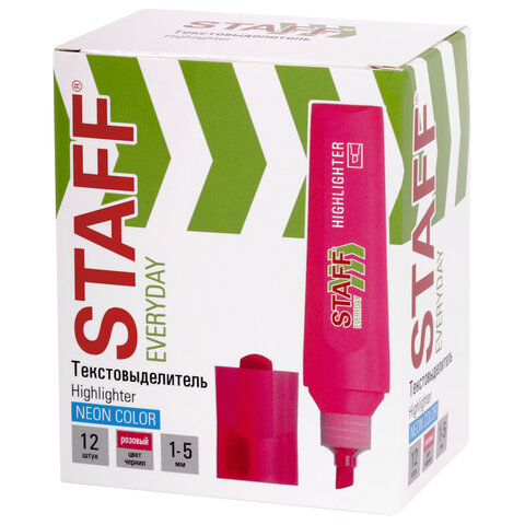Текстовыделитель STAFF "EVERYDAY HL-720", РОЗОВЫЙ, линия 1-5 мм, скошенный наконечник, 152554
