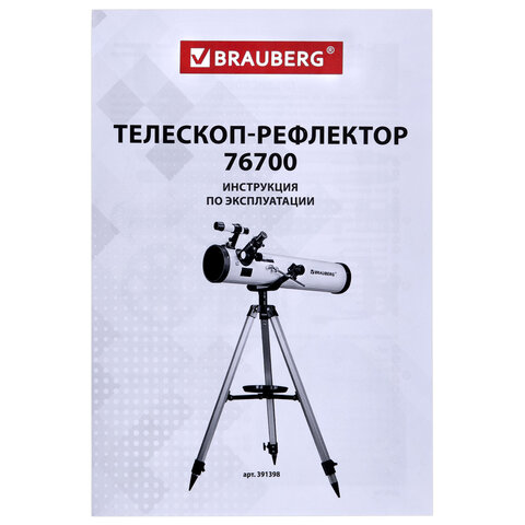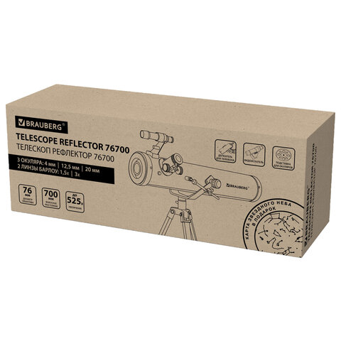 Телескоп рефлектор астрономический, увеличение 525х, объектив 76 мм, фокусное расстояние 700 мм, видоискатель, BRAUBERG 76700, 391398