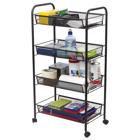 Этажерка (тележка) BRABIX офисно-бытовая 4 яруса, на колесах, металл, черная, 43,5х26х83,5 см, 603753