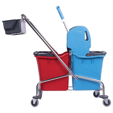 Тележка уборочная, 2 съемных ведра по 25 л, механический отжим, корзина, BRABIX, Турция, 607903