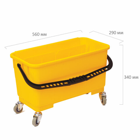 Тележка-ведро на колесах для мытья окон и уборки LAIMA PROFESSIONAL, отжим для окномоек и PVA швабр и швабр с МОП 40 см. Удобство заключается в прямоугольной форме ведра-тележки: удобно полоскать и отжимать швабру.