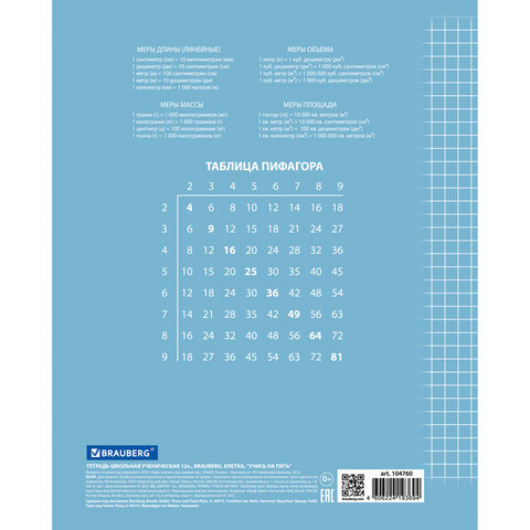 Тетрадь 12 л. BRAUBERG ЭКО "5-КА", клетка, обложка картон 170 г/м2, СИНЯЯ, 104760