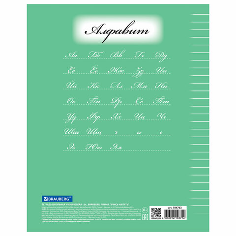 Тетрадь 12 л. BRAUBERG ЭКО "5-КА", линия, обложка картон 170 г/м2, ЗЕЛЕНАЯ, 104763