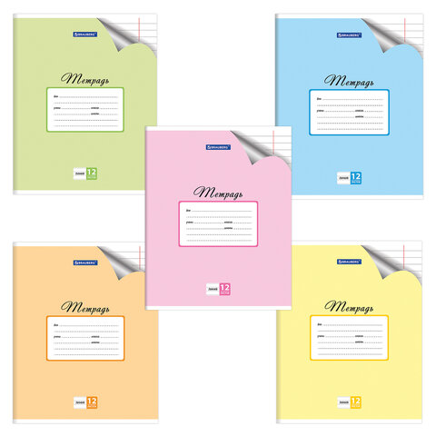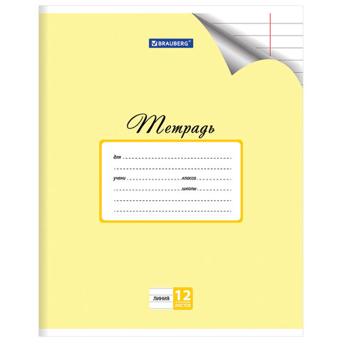 Тетрадь 12 л. BRAUBERG "ЭКО", линия, обложка картон 170 г/м2, ПАСТЕЛЬНАЯ С УГОЛКОМ, 104507