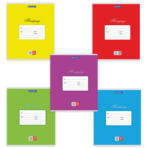 Тетрадь 12 л. BRAUBERG КЛАССИКА, частая косая линия, обложка картон, АССОРТИ (5 видов), 103278