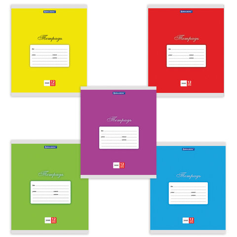 Тетрадь 12 л. BRAUBERG КЛАССИКА, линия, обложка картон, АССОРТИ (5 видов), 103274