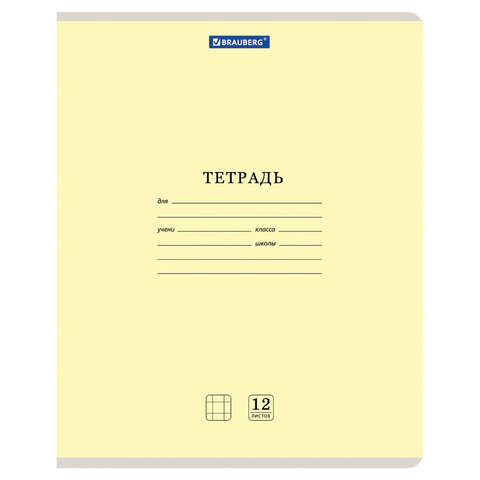 Тетрадь 12 л. BRAUBERG "КЛАССИКА NEW", клетка, обложка картон, АССОРТИ (5 видов), 105682