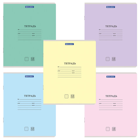 Тетрадь 12 л. BRAUBERG "КЛАССИКА NEW" линия, обложка картон, АССОРТИ (5 видов), 105690
