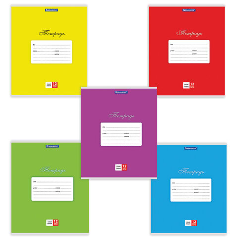 Тетрадь 12 л. BRAUBERG КЛАССИКА, узкая линия, обложка картон, АССОРТИ (5 видов), 103277