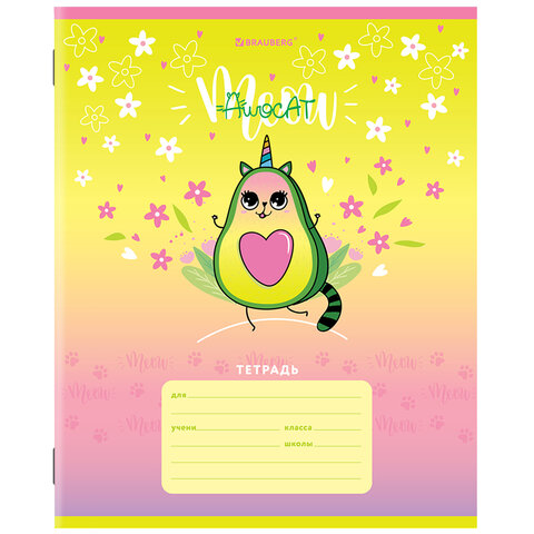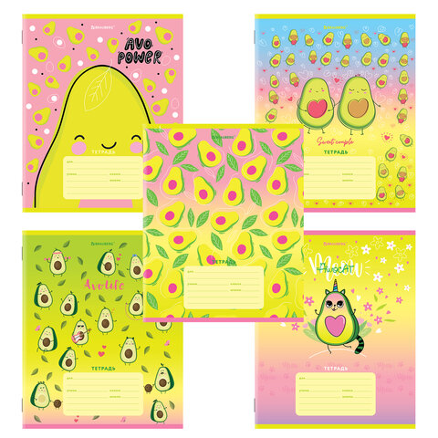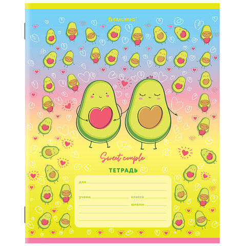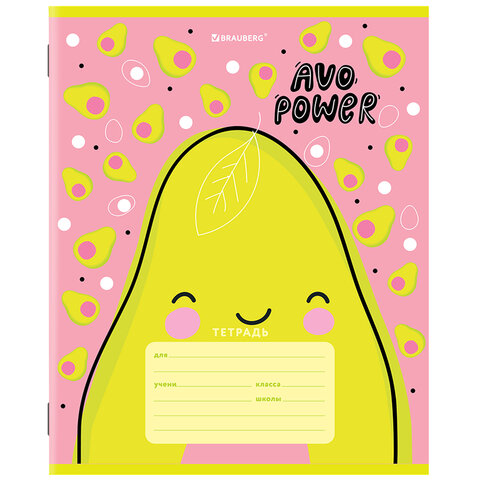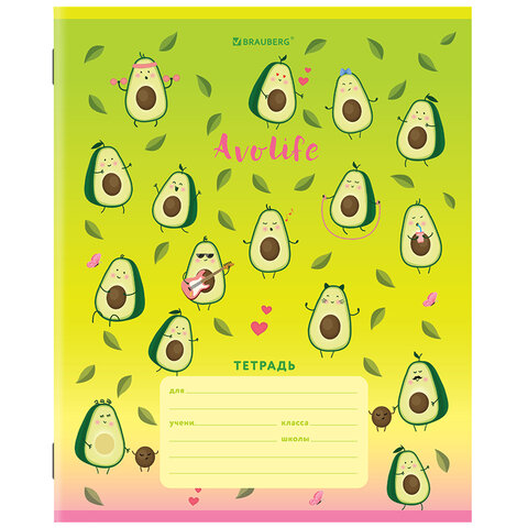 Тетрадь 12 л. BRAUBERG, клетка, обложка картон, "АВОКАДИКИ", 106461