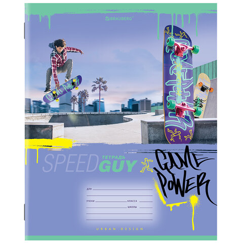 Тетрадь 12 л. BRAUBERG, клетка, обложка картон, "URBAN BOYS", 106466