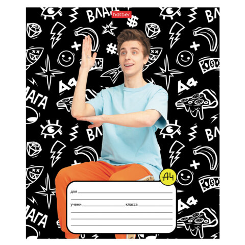 Тетрадь 12 л., HATBER клетка, обложка картон, "Влад А4" (микс в спайке), 073122, 12Т5В1