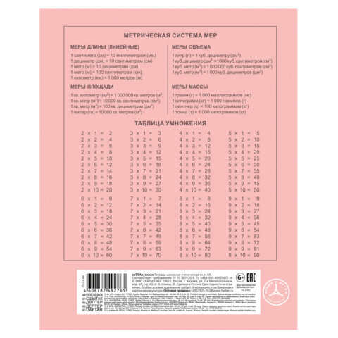 Тетрадь 12 л., HATBER Premium, клетка, обложка картон, плотная бумага 80 г/м2, "NEWtone" Розовый кварц, 089680, 12Т5A1_05056