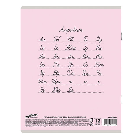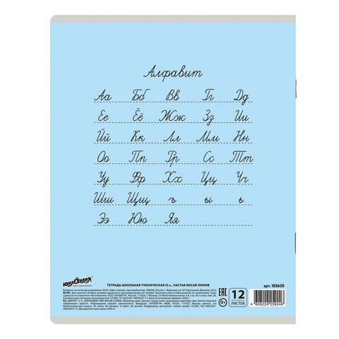 Тетрадь 12 л. ЮНЛАНДИЯ КЛАССИЧЕСКАЯ, частая косая линия, обложка картон, АССОРТИ 5 видов, 105650