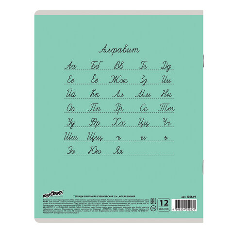 Тетрадь 12 л. ЮНЛАНДИЯ КЛАССИЧЕСКАЯ, косая линия, обложка картон, АССОРТИ 5 видов.105649