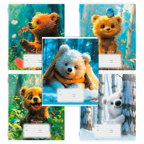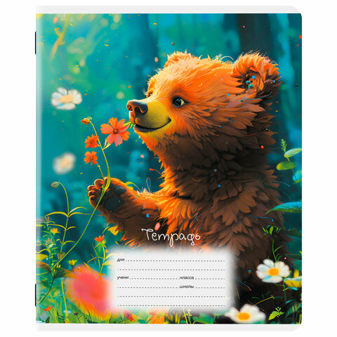 Тетрадь 12 л. ЮНЛАНДИЯ, клетка, обложка картон, МИШКИ, 107275