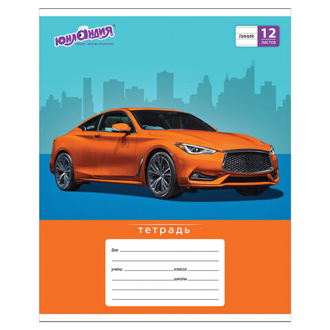 Тетрадь 12 л. ЮНЛАНДИЯ линия, обложка картон, "АВТО-КЛАСС", 105634