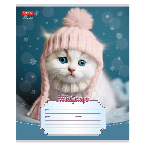 Тетрадь 12л. HATBER линия, обложка картон, Уютные котики (микс в спайке), 12Т5В2