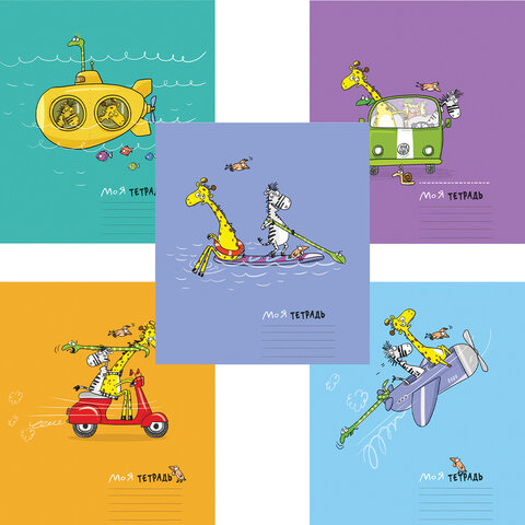 Тетрадь 12 л., ПЗБМ клетка, выборочный лак, брайль, "Трое в лодке, не считая жирафа" (5 видов), 15960