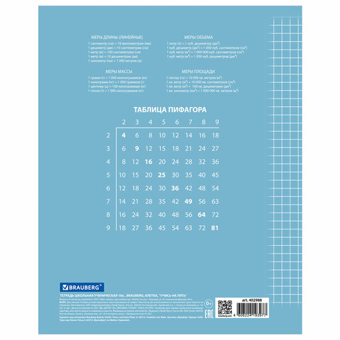 Тетрадь 18 л. BRAUBERG ЭКО "5-КА", клетка, обложка картон 170 г/м2, СИНЯЯ, 402988