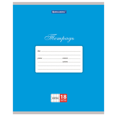 Тетрадь 18 л. BRAUBERG КЛАССИКА, клетка, обложка картон, СИНЯЯ, 104731