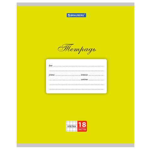Тетрадь 18 л. BRAUBERG КЛАССИКА, клетка, обложка картон, ЖЕЛТАЯ, 104728