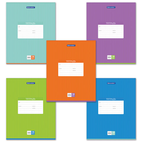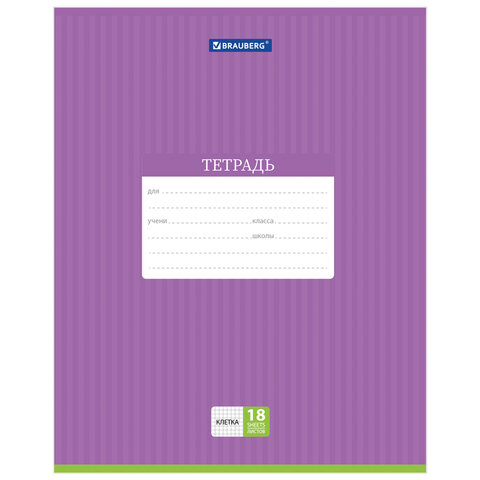 Тетрадь 18 л. BRAUBERG, клетка, обложка картон, ПОЛОСКИ ОДНОТОННЫЕ, 401856