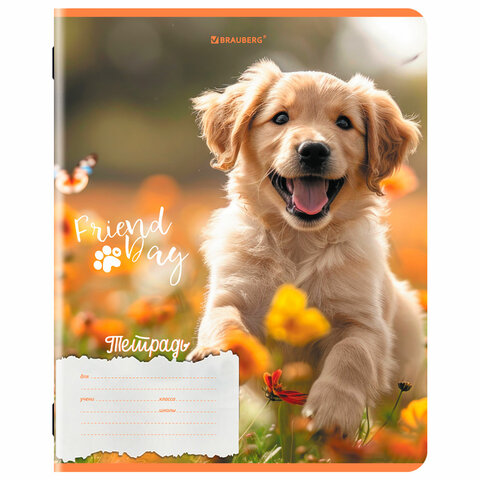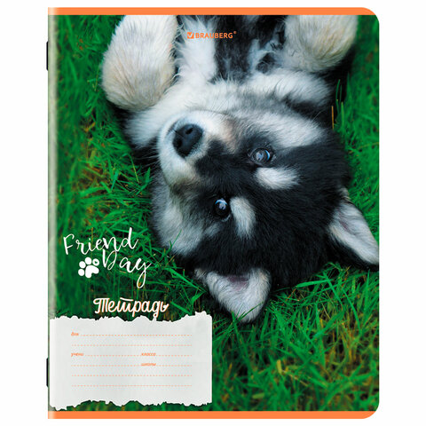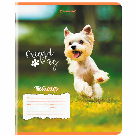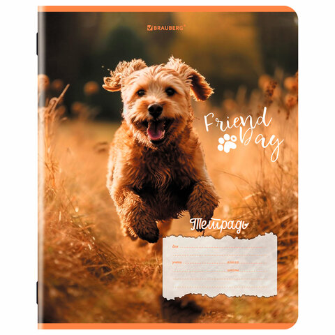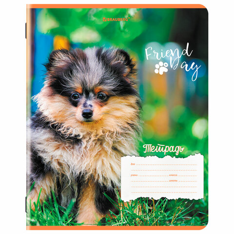 Тетрадь 18 л. BRAUBERG клетка, обложка картон, СОБАЧКИ, 107295