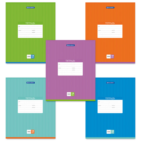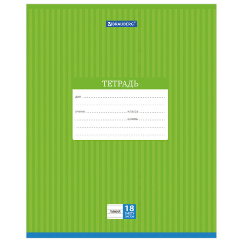 Тетрадь 18 л. BRAUBERG, линия, обложка картон, ПОЛОСКИ ОДНОТОННЫЕ, 401860