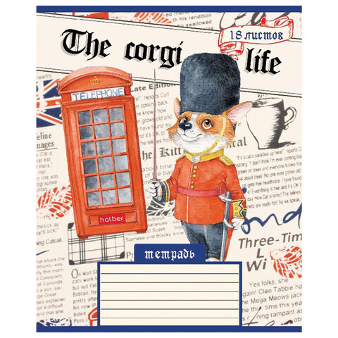 Тетрадь 18 л. HATBER клетка, обложка картон, "Корги_LIFE" (5 видов в спайке), 18Т5В1