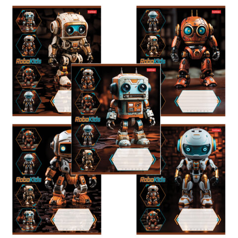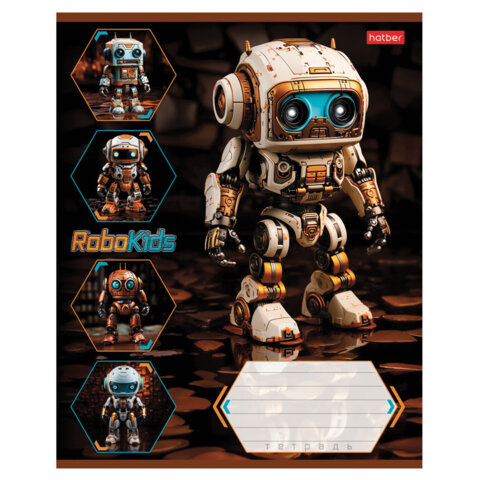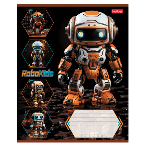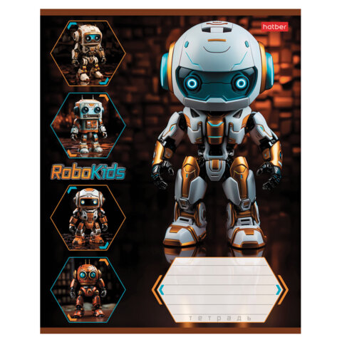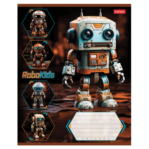 Тетрадь 18 л., HATBER клетка, обложка картон, "Робо" (микс в спайке), 084624, 18Т5В1