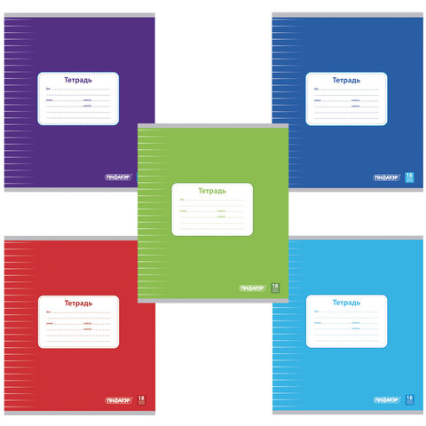 Тетрадь 18 л., ПИФАГОР, линия, офсет №2 ЭКОНОМ, обложка картон 170 г/м2, ОДНОТОННАЯ, 104550