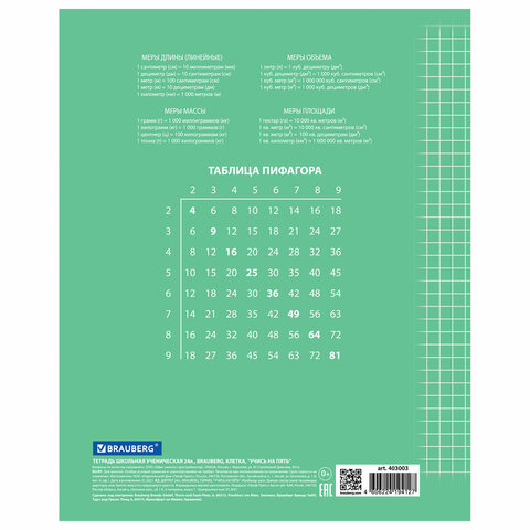 Тетрадь 24 л. BRAUBERG ЭКО "5-КА", клетка, обложка картон 170 г/м2, ЗЕЛЕНАЯ, 403003
