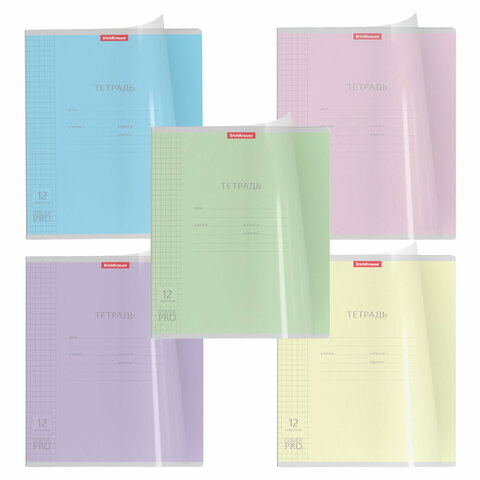 Тетрадь обложка пластик, 12 л. клетка, Erich Krause, CoverPro (микс в спайке), 56338