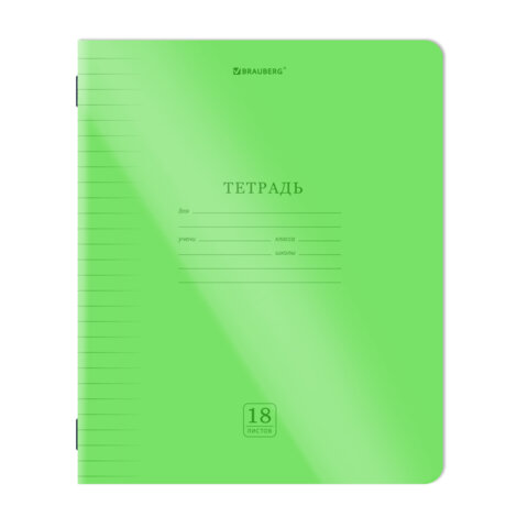 Тетрадь пластиковая обложка (НЕОН) 18 листов, линия, BRAUBERG "Smart Cover", АССОРТИ (микс в спайке), 405033