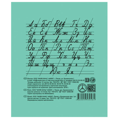 Тетрадь "Маяк" с зеленой обложкой изготовлена в соответствии с ГОСТ 12063-89. Предназначена для дошкольников и учащихся начальных и средних классов.